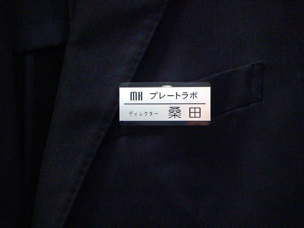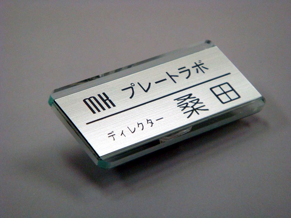 | 仕様 | ●サイズ タテ2.8cmXヨコ6cm 厚さ3mm 印字のプレート部分は2.2cmX6cm ●素材 ガラスカラーのアクリル板 ABS板とPET板を埋め込み仕様 ●印字方法 文字部分 彫刻(黒) ●留め具 クリップ、安全ピンなど カスタマイズでマグネット留め具対応可 |