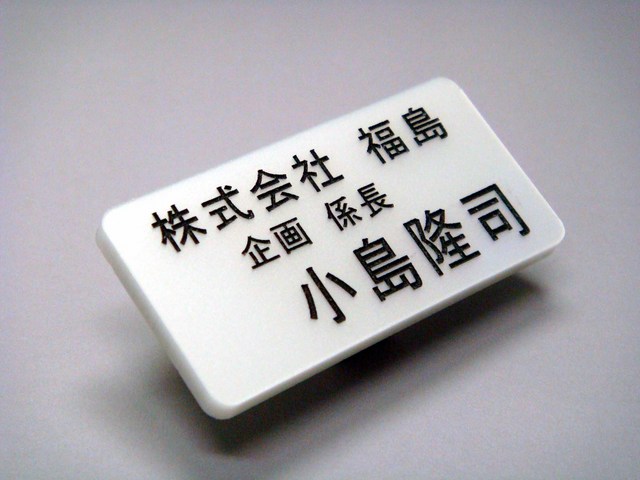 | 特徴 | 重さ、質感、耐水性、耐汚性 、耐久性などにすぐれたアクリル板3mm厚使用、彫刻印字タイプの定番名札。 |