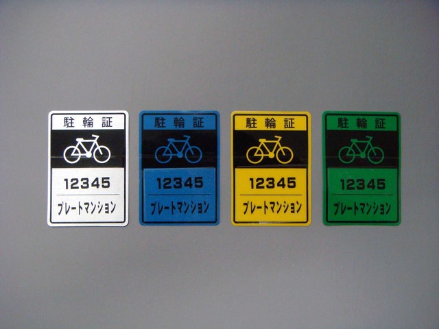 | 仕様 | ユニバーサルデザインシリーズ ヨコ3.5cmXタテ5cm 耐水・耐候性用紙(シルバーヘアーラインはアルミPET、その他の色は塩ビ) バックの色は素材自体の色ですので日が経っても色褪せません。 耐候インク使用 キズ防止用表面透明フィルム貼り 駐輪許可の用途としての耐候・耐水・耐傷性 完全対応品 |