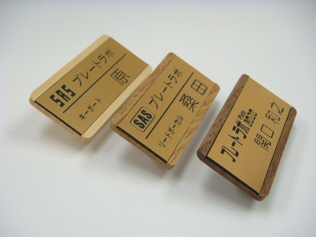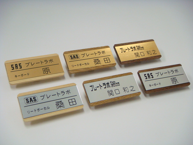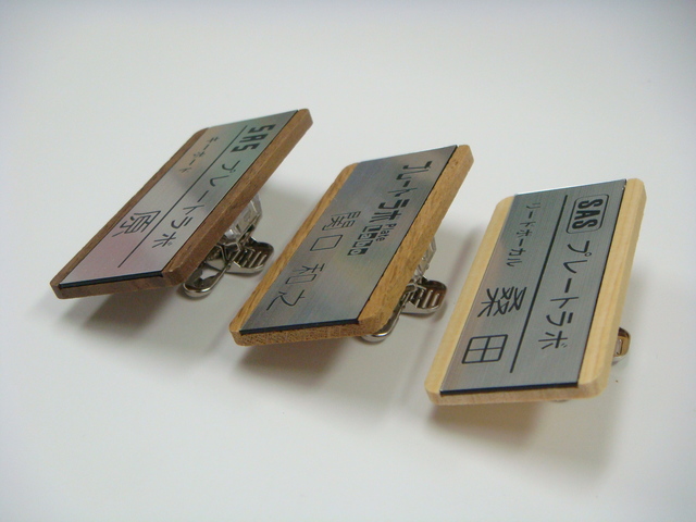 | 仕様 | ●サイズ タテ2.8cmXヨコ6cm 厚さ3mm 印字の埋め込みプレート部分は2.2cmX6cm ●素材 天然木のオーク材、ウォールナット材、ヒノキ ニス仕上げ ABS板プレートを埋め込み処理 ●印字方法 文字部分 彫刻(黒) ●留め具 クリップ、安全ピンなど カスタマイズでマグネット留め具対応可 |
