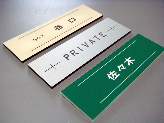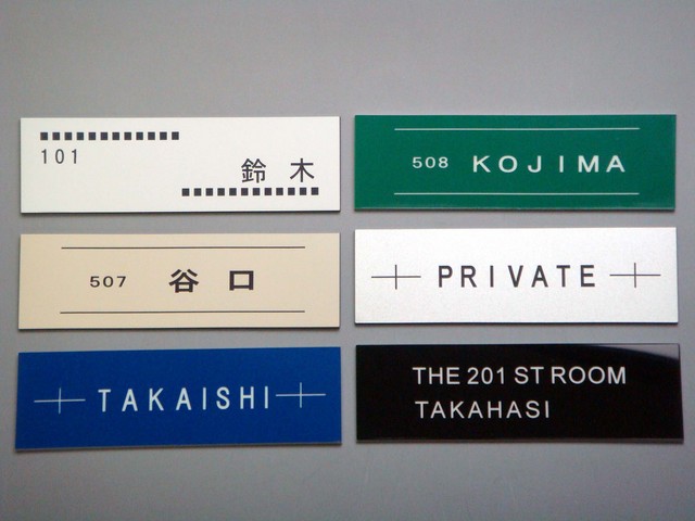 | 特徴 | アクリル板の表面に車のボディのような塗装をした上質感のあるプレート板使用 (シルバー色のみマット調、その他の色はすべて光沢) さまざまな用途に使用できます レイアウト・デザイン自由 サイズ-面積内で タテXヨコ 自由設定 ●用途 アパート・マンション集合ポスト用表札・室表札・室名札・エントランス表札・ホテル・飲食・美容室・施設・その他店舗・オフィ ス・ロッカー・倉庫・工場などで 表示プレート・ネームプレート他 |